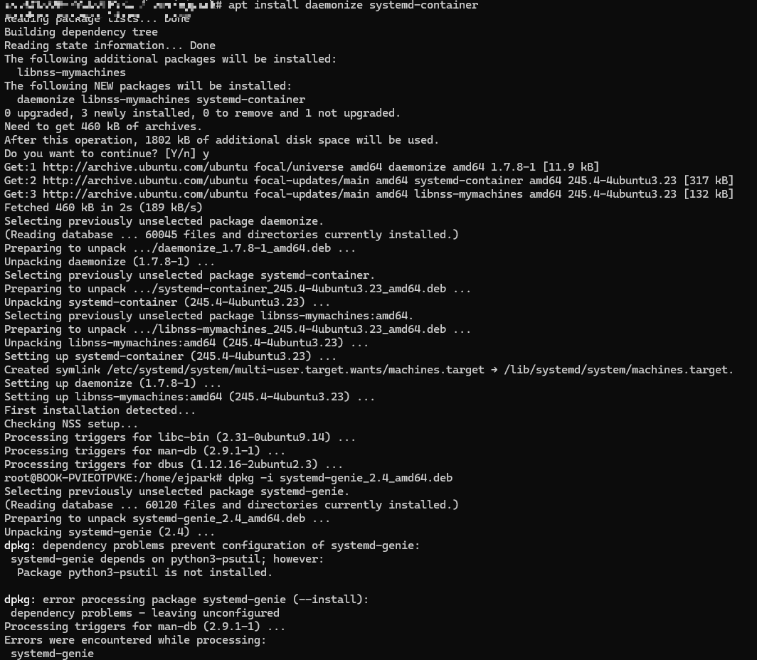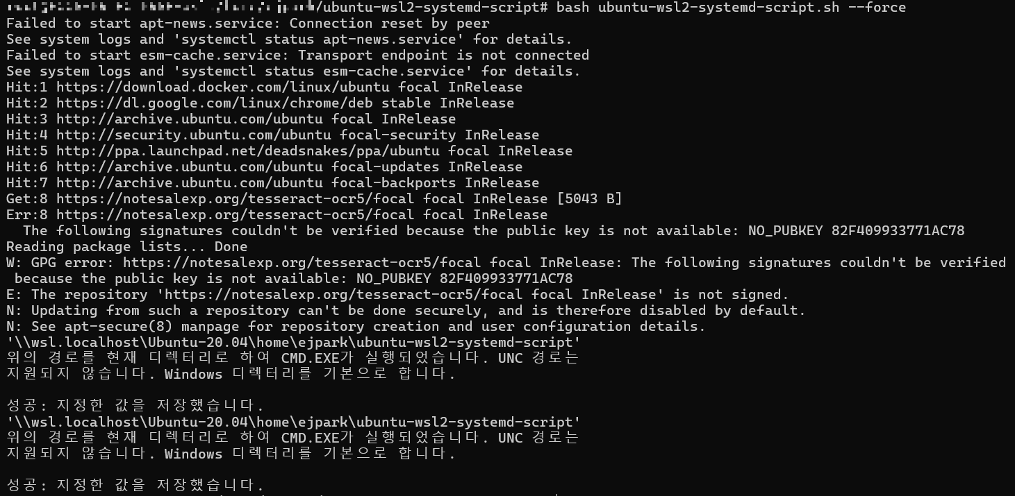 아예 wsl의 루트 시스템을 systemd로 바꾸는 git 레포에서 직접 스크립트를 내려받아 실행하는거였고 아무리 생각해도 이게 정말로 마지막 보루였으며
